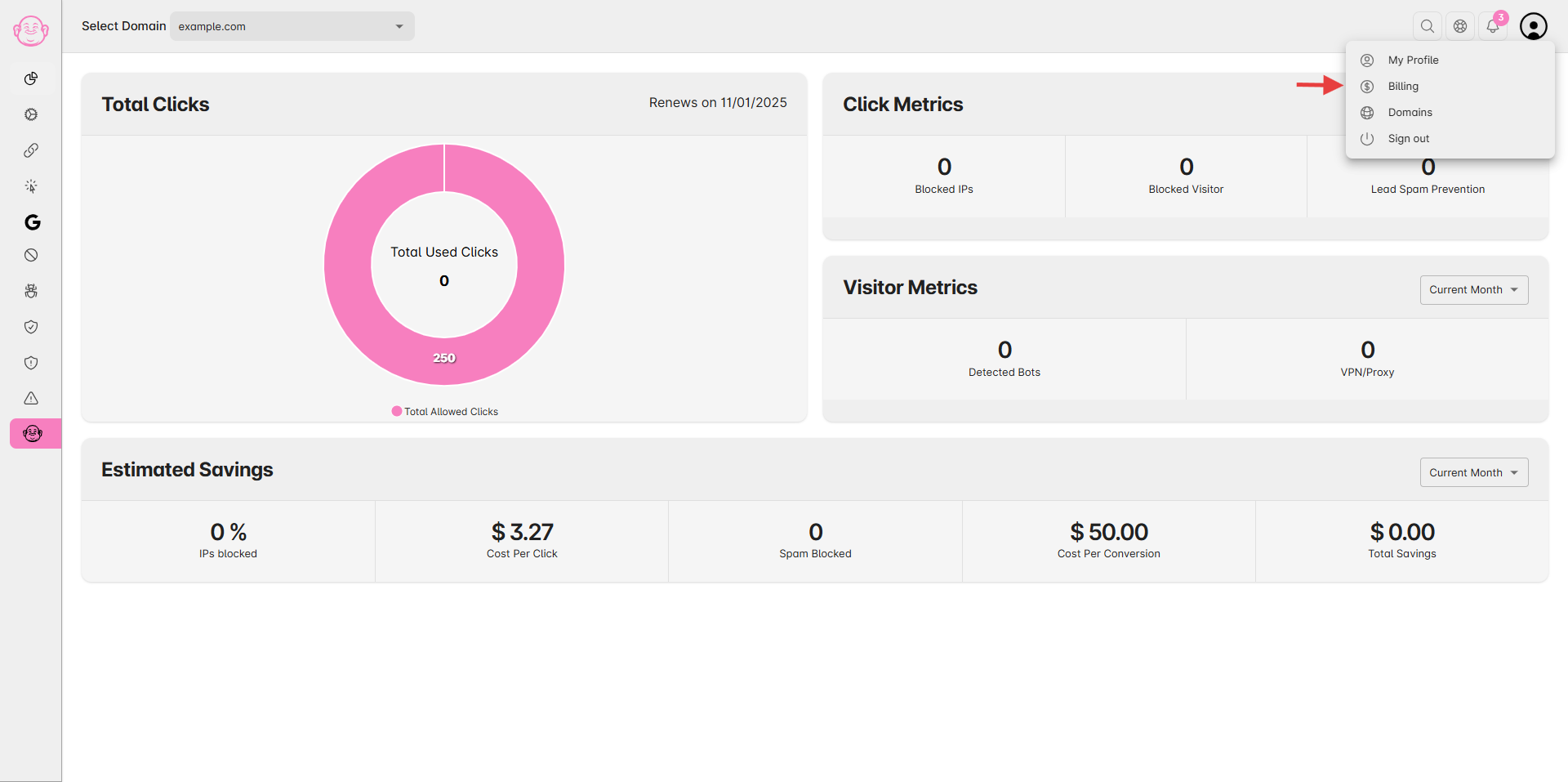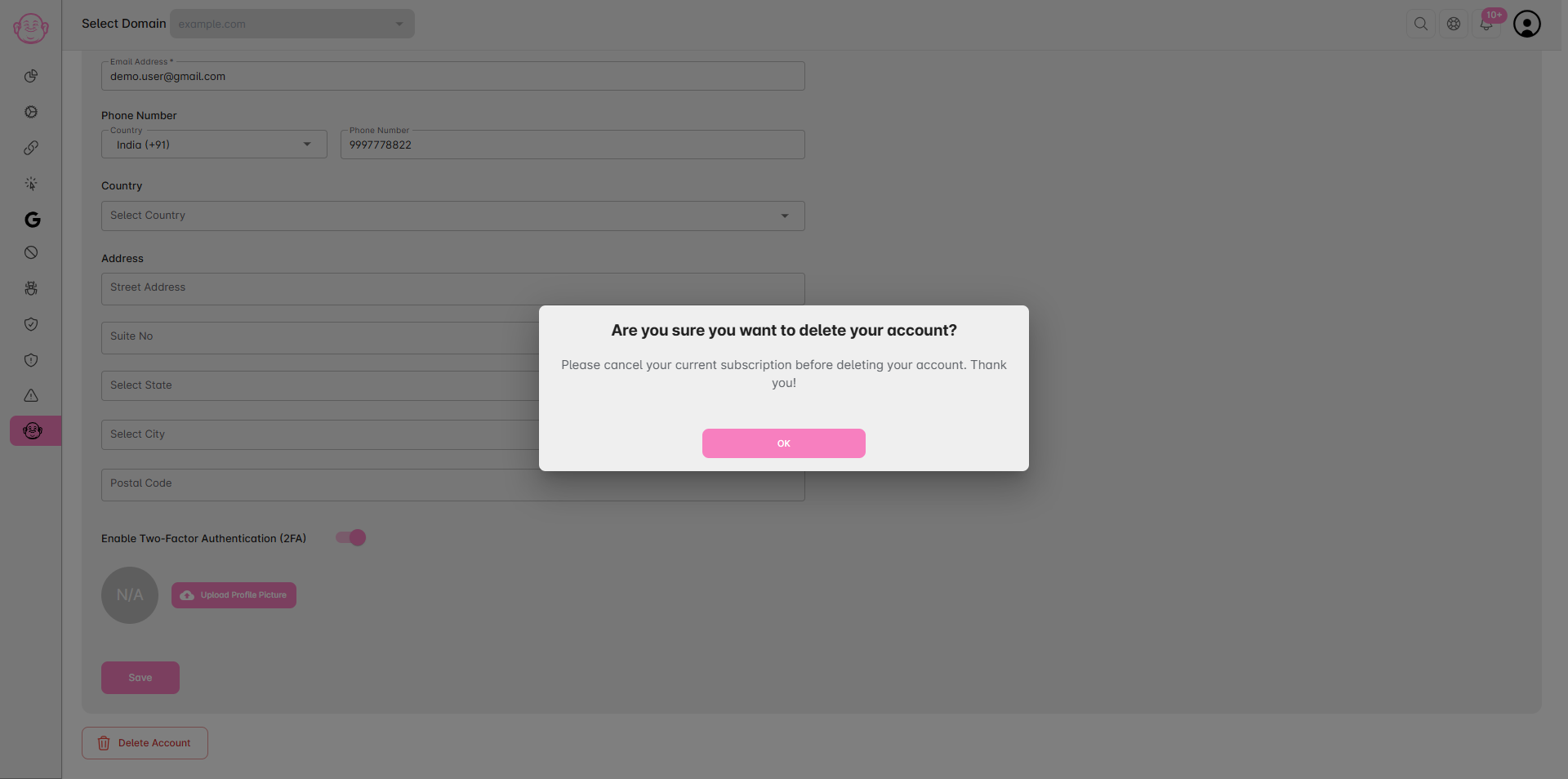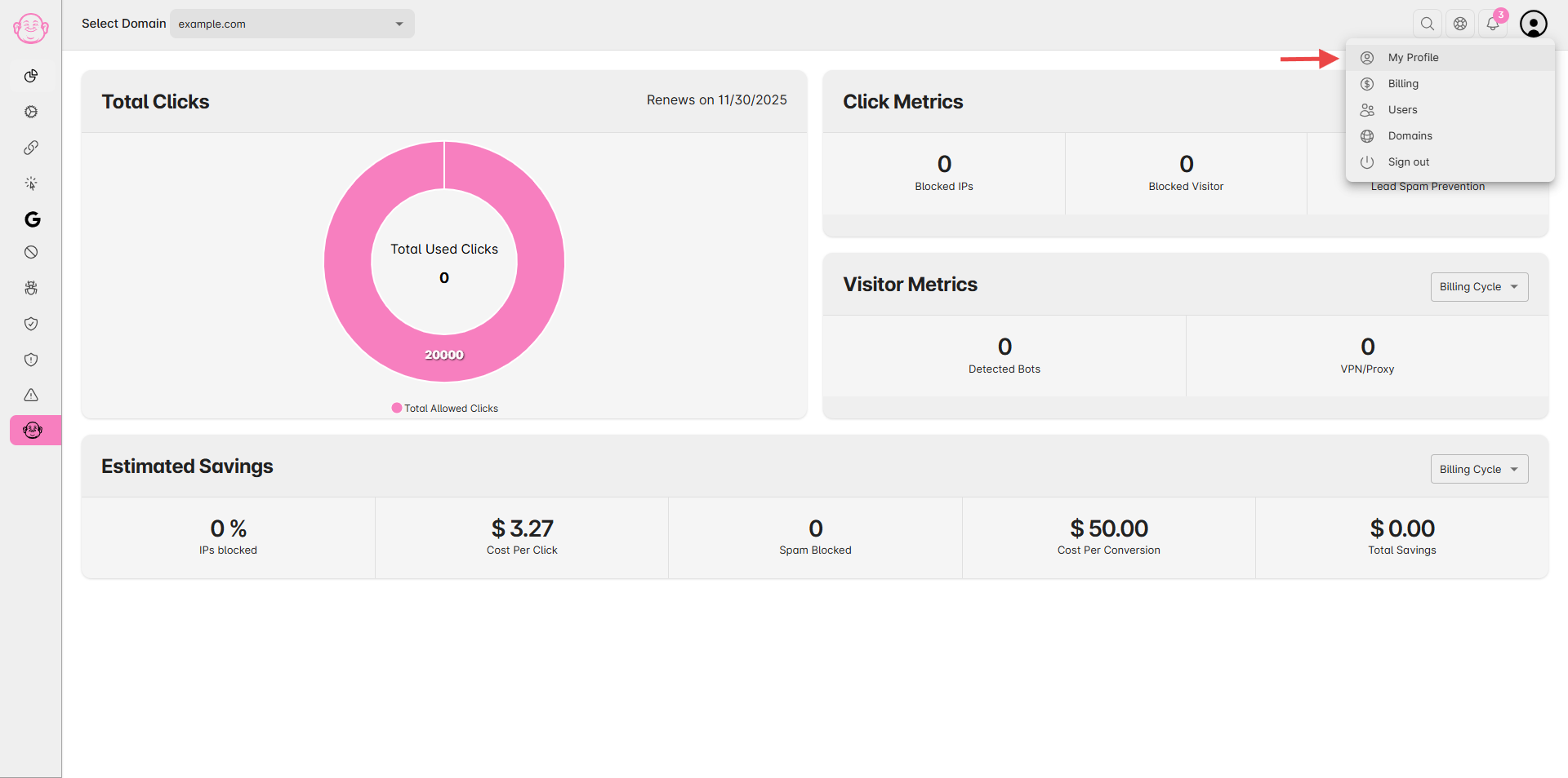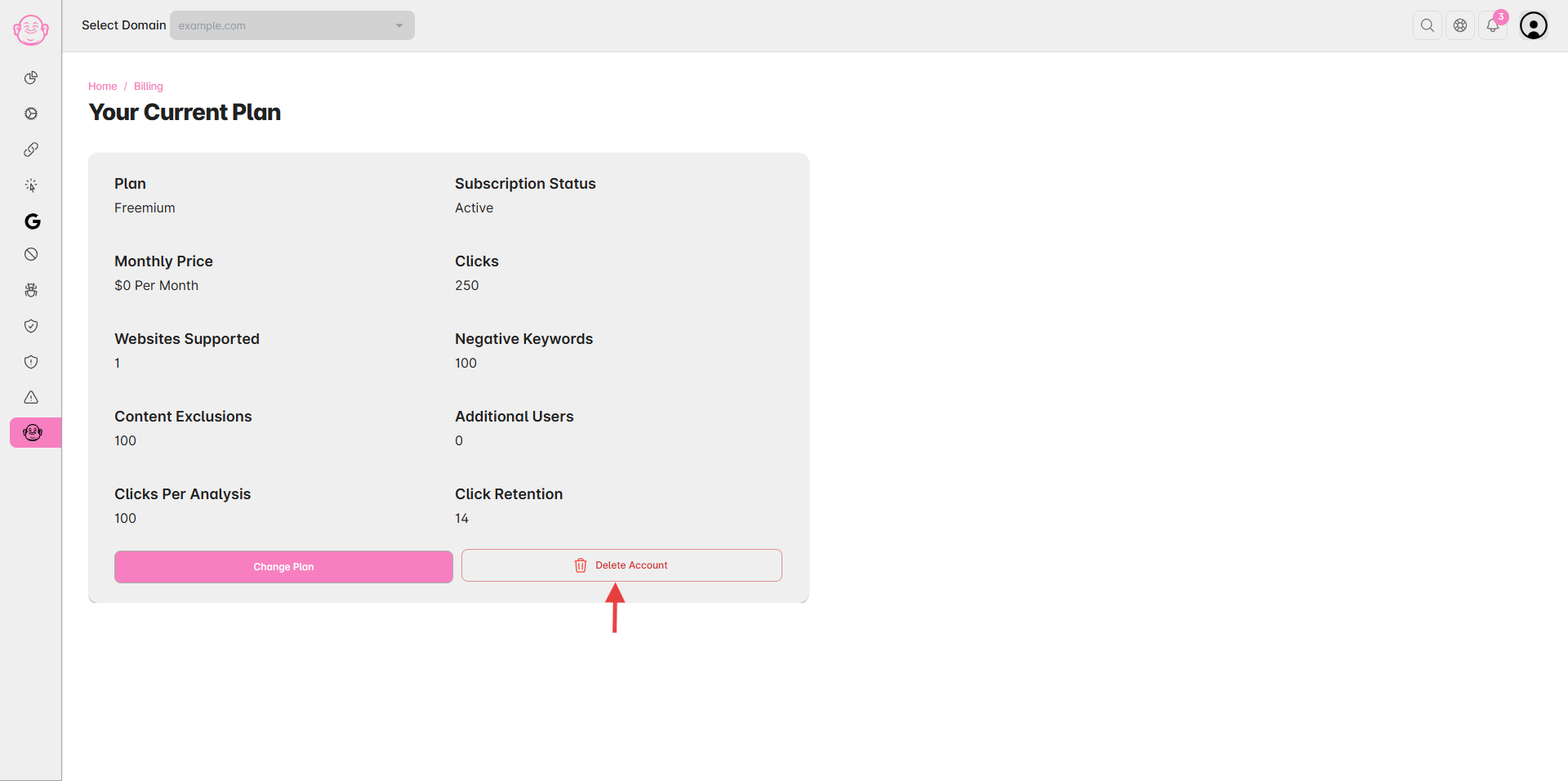 If you no longer wish to use, Click Buddha, you can permanently delete your Click Buddha account, including all domains, data, and settings. There are two ways to delete your account: through My Profile or the Billing Section.
