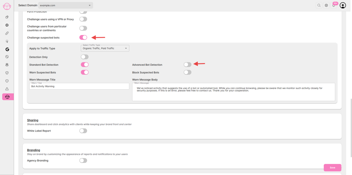 Ensure "Advanced Bot Detection " Toggle is enabled.