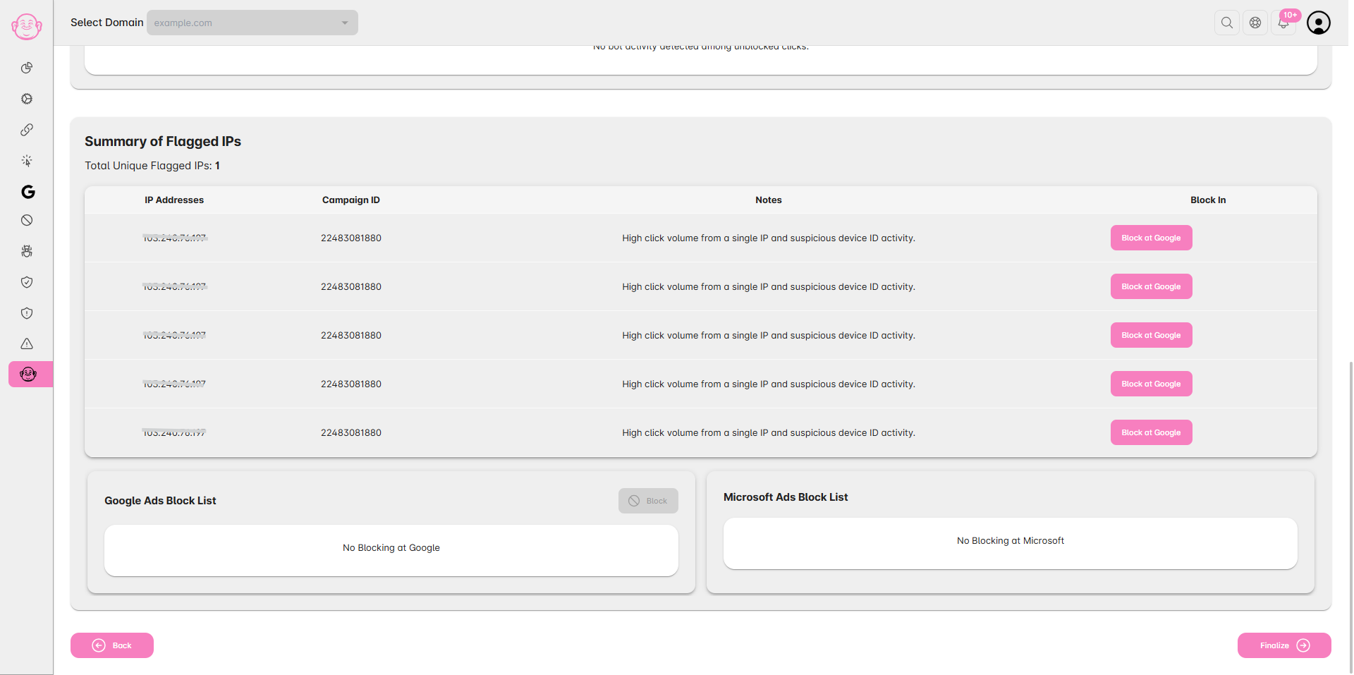 Once the analysis is complete, you’ll receive a notification to Review & Block IPs.