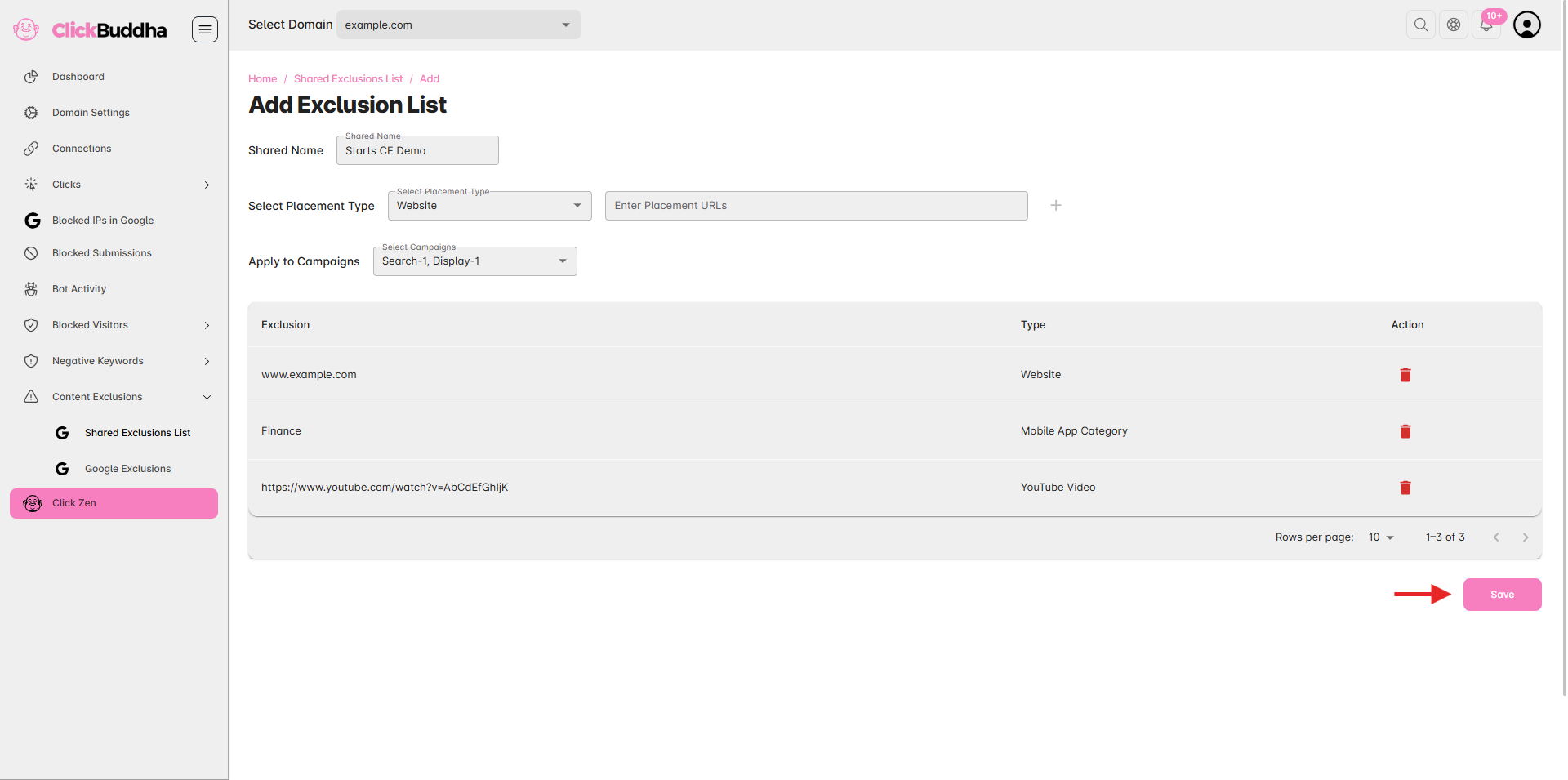 Click Buddha allows you to create and manage Shared Placement Lists — a convenient way to apply the same excluded or targeted placements across multiple Google Ads campaigns.
