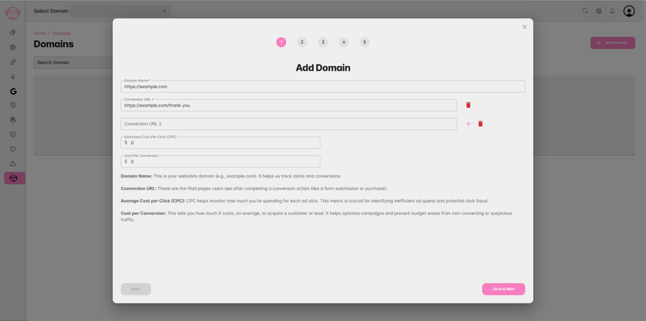 Now head to your Domain Dashboard to start monitoring clicks, detecting bots, and viewing analytics.