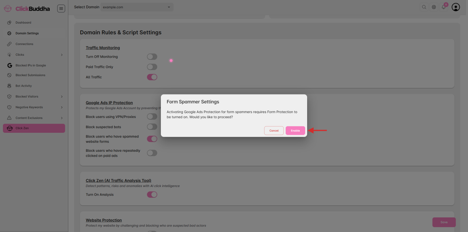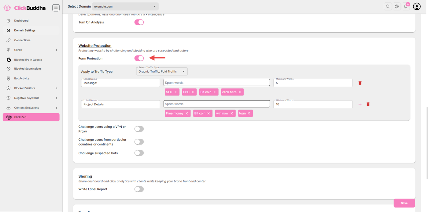 Click Buddha helps prevent spam submissions and bot activity on your website forms, ensuring that only genuine users can submit forms.