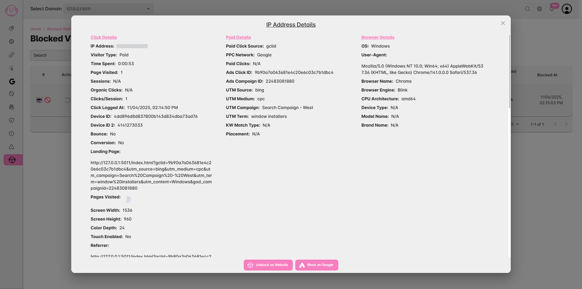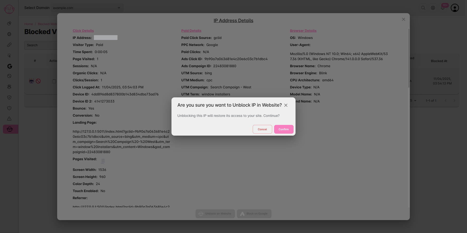 Click Buddha allows you to unblock or whitelist IPs to ensure legitimate visitors can access your website and that Google Ads campaigns are not affected by false positives.
